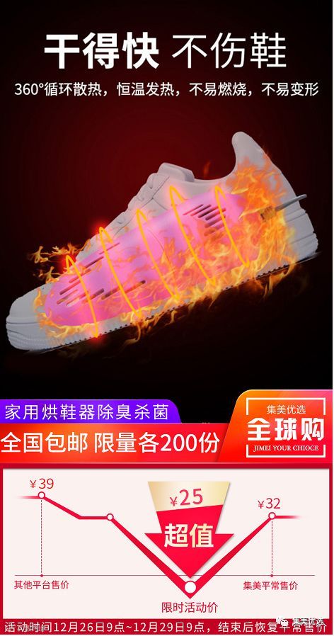 烘鞋器烘干、除湿、暖鞋,干得快,不伤鞋,伸缩一体设计,360°循环散热,恒温发热,不易燃烧,不易变形。多孔出气,全方位烘干,面积大,烘干更快。