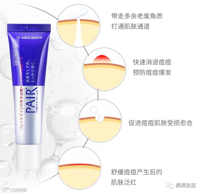 接近肌肤ph弱酸性、具有杀菌和抗炎双重功效。含有IPPN、IPMP有效成分,双重功效深层根治痘痘暗疮,具有排出脂肪粒、杀灭原因菌、消除红肿3冲功效。对于已经成熟的痘痘,可析出脂肪粒;对于正在生长的痘痘,则有抑制脂肪粒并逐渐消除的功效。温和配方,呈弱酸性,接近皮肤PH值,清爽不刺激,植物配方,易吸收。每日可多次使用。