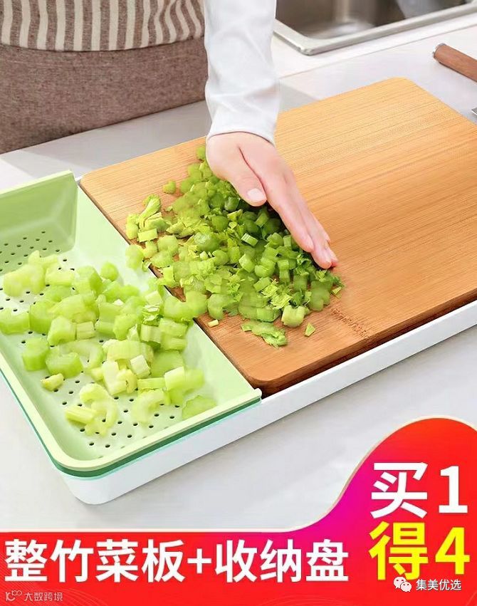 四件套菜板 ,多功能, 让做菜成为艺术,从切菜到入锅轻松搞定, 切菜盛放 一步到位,即是菜板 也是收纳盒, 用安全食盘享放心早餐,整竹砧板 耐砍耐剁 ,做好午餐必须来点硬菜,双面可用生熟分开很健康 ,表面0胶水、 0甲醛更健康。防溢水托盘, 切多汁食材时台面干干净净。