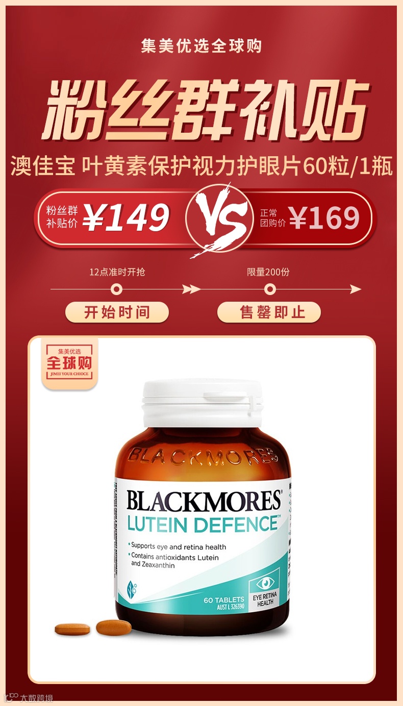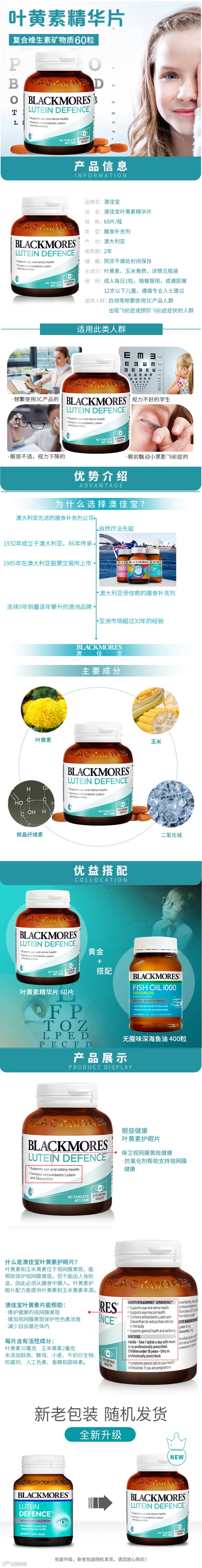 【粉丝群补贴】澳洲 Blackmores/澳佳宝 叶黄素保护视力护眼片60粒/1瓶 原价:169元