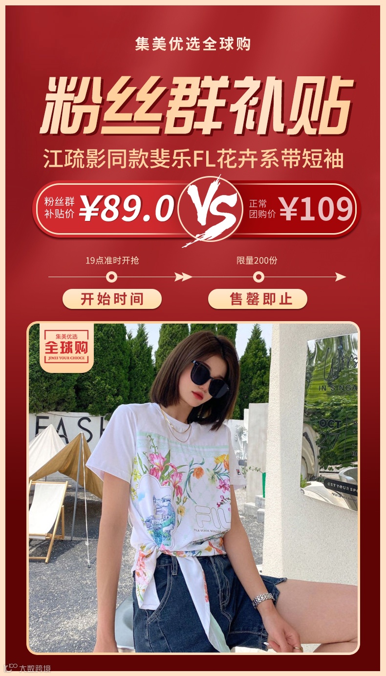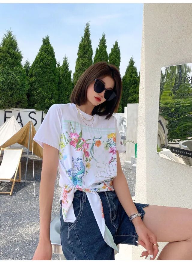 【粉丝群补贴】江疏影同款斐乐FL花卉系带短袖(尺码可选)