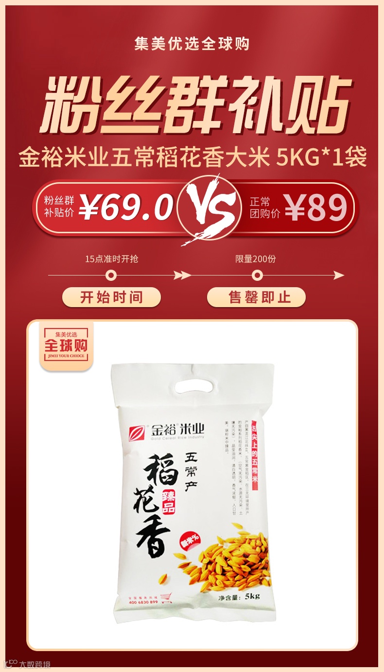 【粉丝群补贴】金裕米业东北五常产臻品稻花香大米 5kg*1袋(新疆 西藏 无法配送)