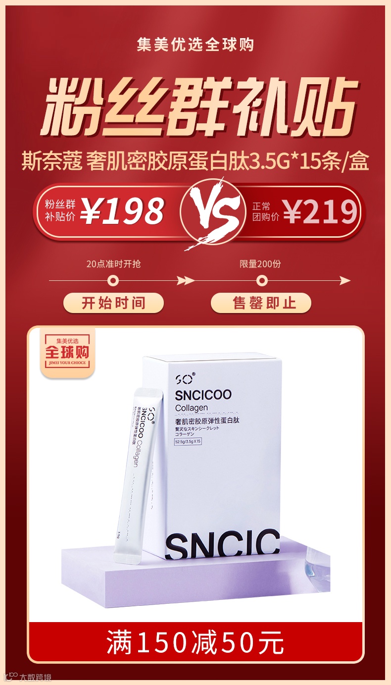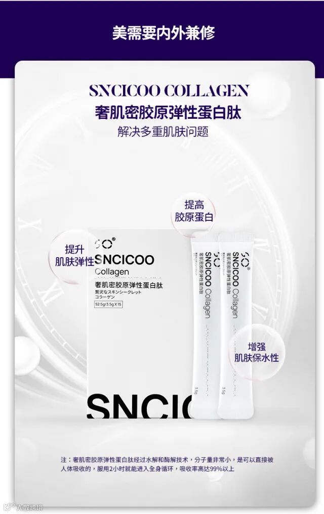 【粉丝群补贴】斯奈蔻SNCICOO奢肌密胶原弹性蛋白肽3.5g*15条/盒