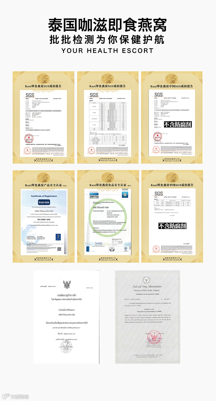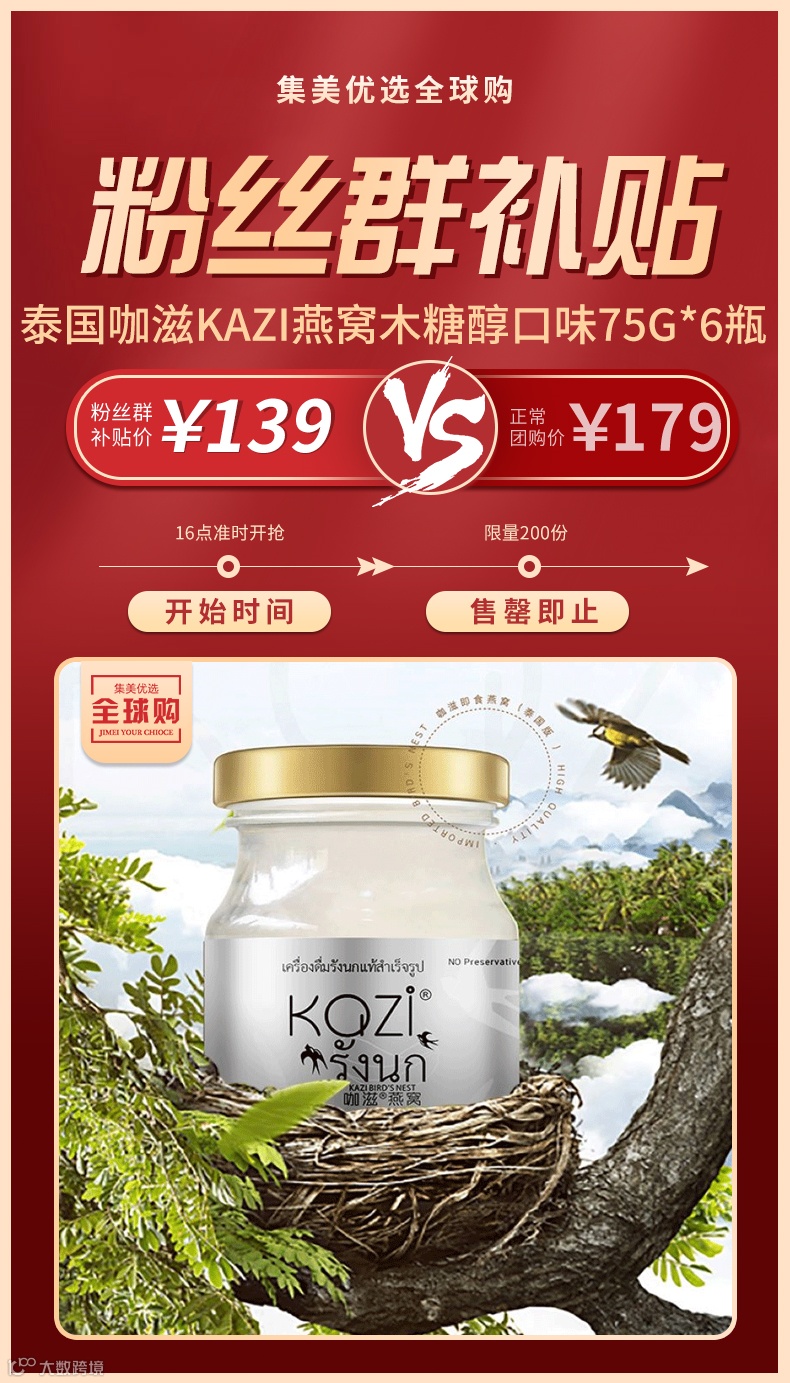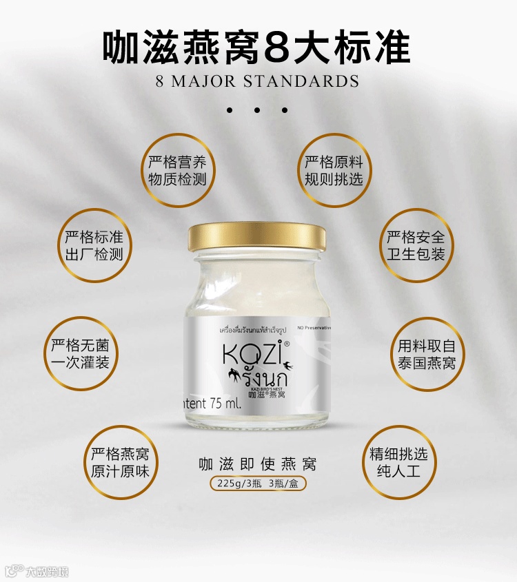 【粉丝群补贴】泰国咖滋KAZI即食燕窝木糖醇口味泰国进口燕窝手工挑毛75g*6瓶