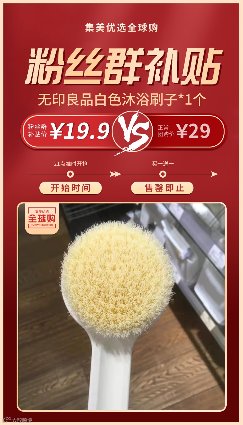 【粉丝群补贴·买一送一】无印良品白色沐浴刷子*1个