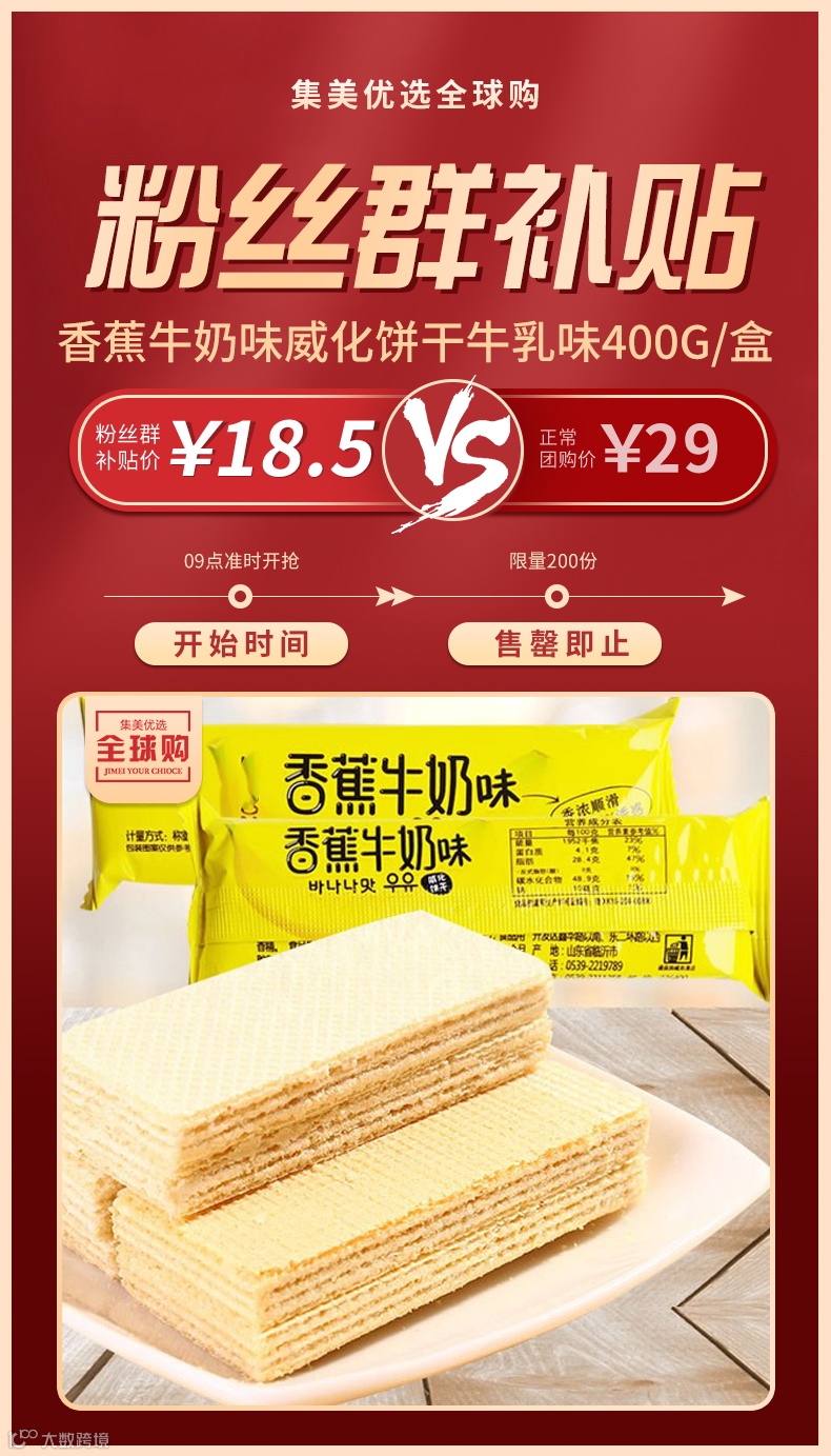 【粉丝群补贴】香蕉牛奶味威化饼干牛乳味400克/盒