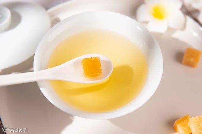 精致小巧的糖块,金黄的色泽中透着光亮。