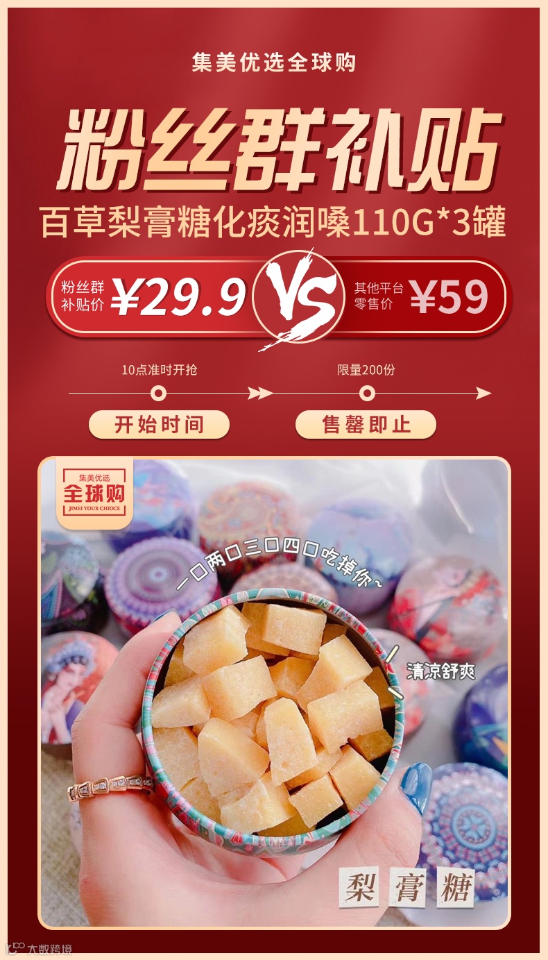 【粉丝群补贴】百草梨膏糖化痰润嗓 提神醒脑110g*3罐 原价:59元 粉丝群补贴价:29.9元