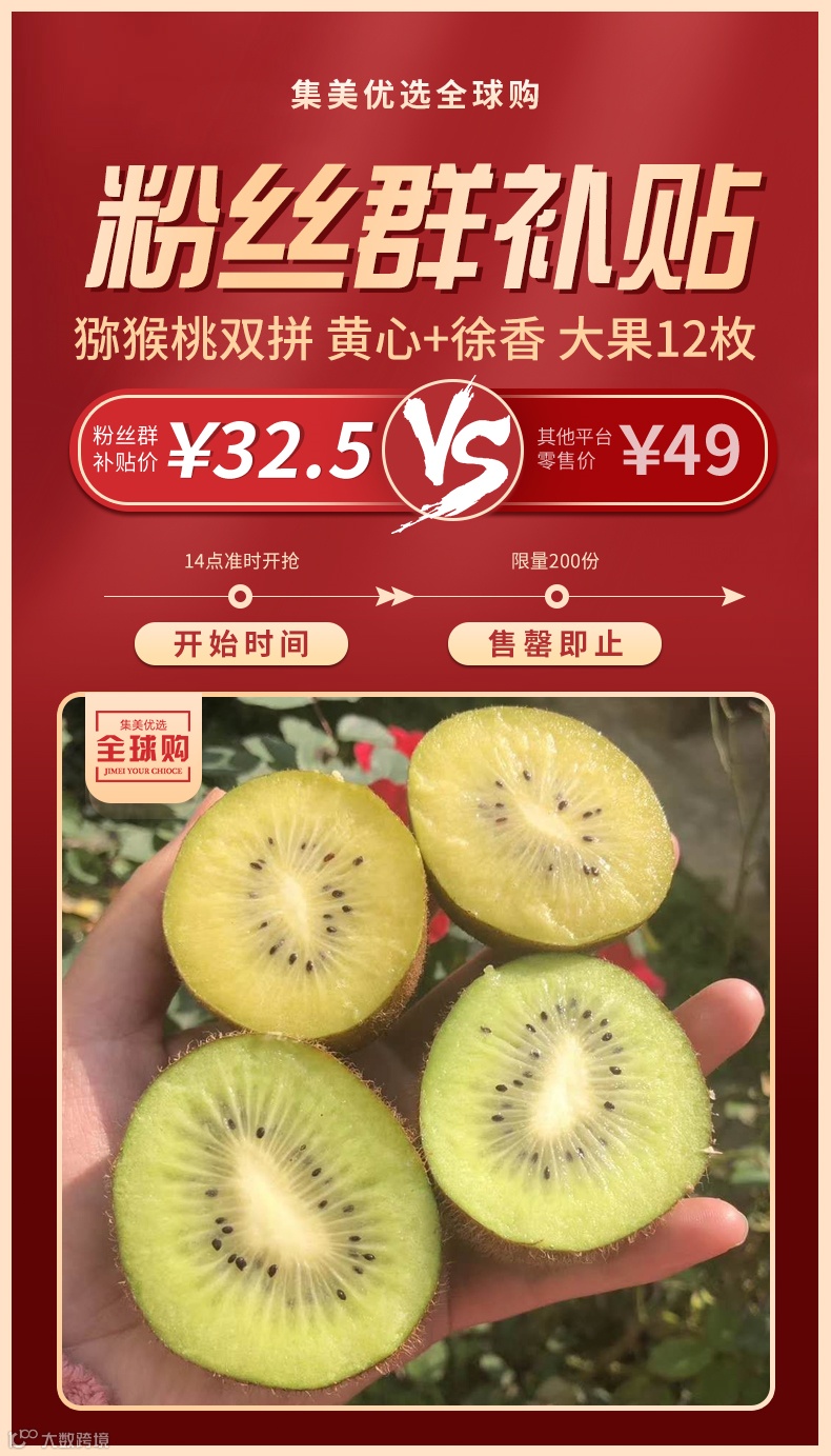 【粉丝群补贴】猕猴桃双拼【黄心+徐香】大果12枚 原价:69元