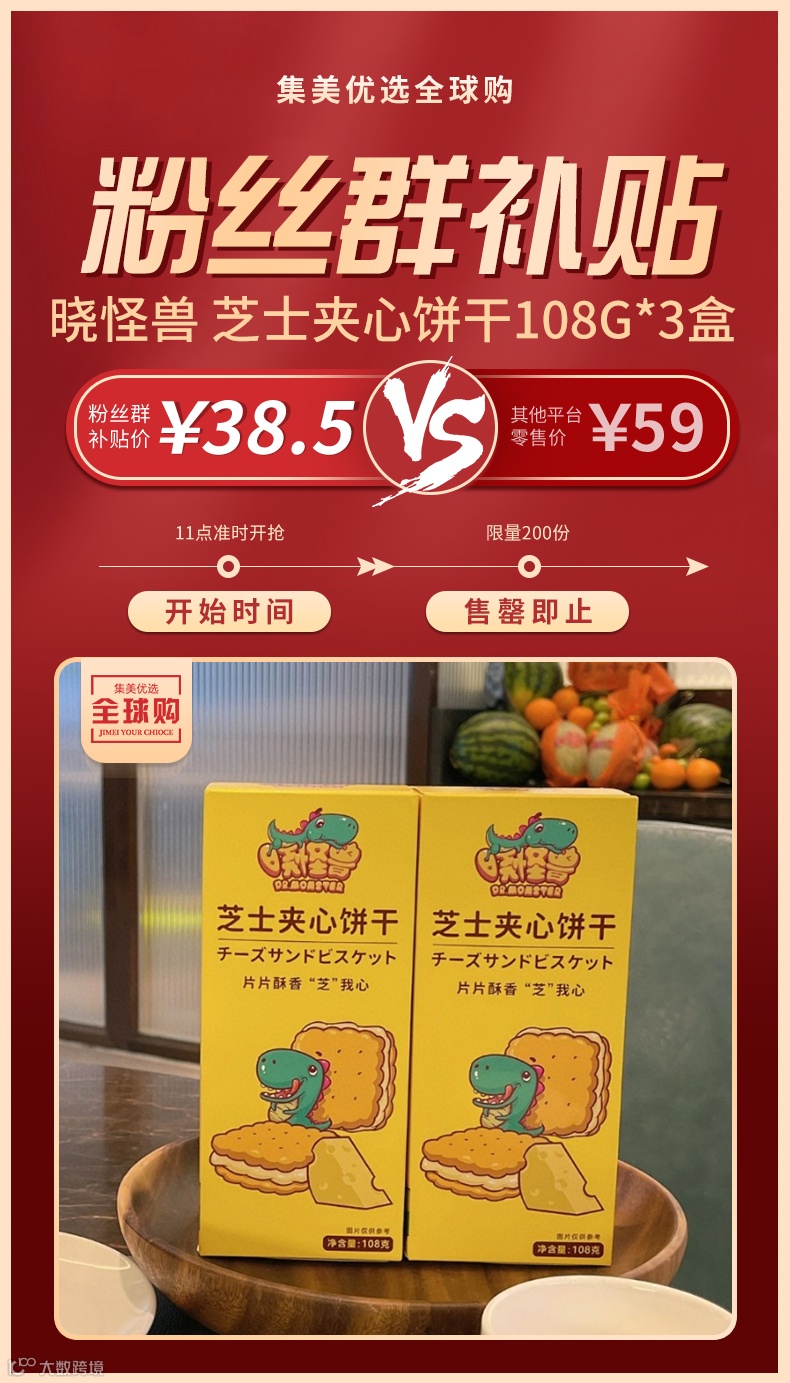 【粉丝群补贴】山姆同款 晓怪兽-芝士夹心饼干108g*3 原价:59元 粉丝群补贴价:38.5元