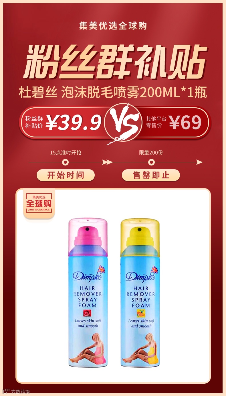 【粉丝群补贴】英国Dimples 杜碧丝 泡沫脱毛喷雾200ml