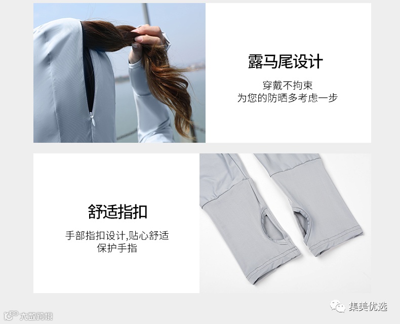 类似斗篷的蝙蝠袖设计,不仅不挑身材,胖瘦都能穿。帽子上还有拉链式马尾孔,扎马尾也可以放心穿,而且款式非常时尚,上身很美。不用再为了防晒牺牲你的颜值