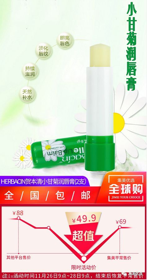 德国 Herbacin贺本清 小甘菊修护润唇膏滋润保湿不油腻,能让你的嘴唇在干燥的季节也水水嫩嫩,滋润一整天呐!