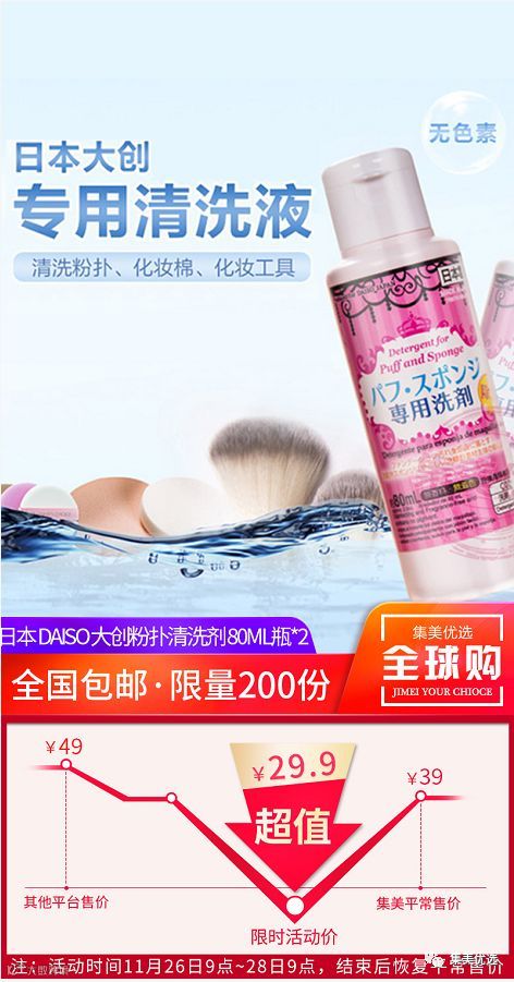【福利团购】日本 Daiso 大创粉扑清洗剂 80ml瓶*2