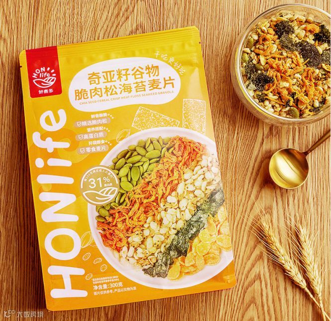 一共四款,水果莓莓麦片,脆肉松海苔麦片