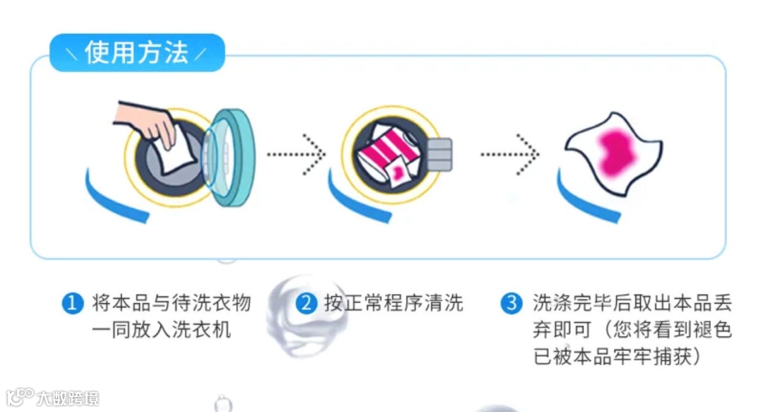 3.洗涤完毕后取出本品丢弃即可。(您将看到褪色已被本品牢牢捕获)