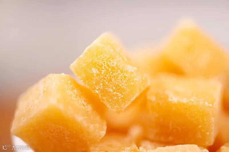 精致小巧的糖块,金黄的色泽中透着光亮。
