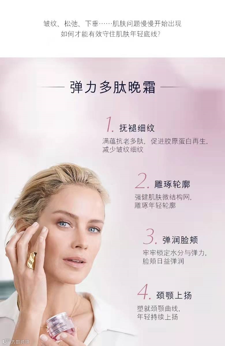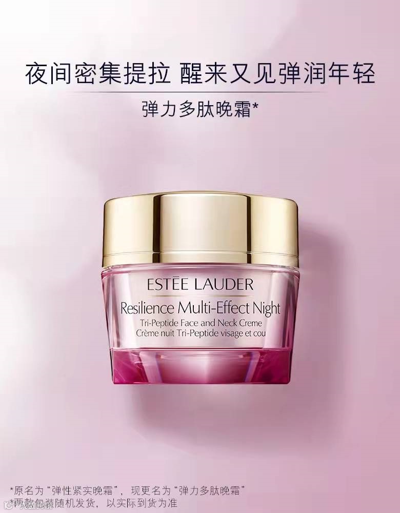 提升、紧致面部肌肤,焕发双颊光泽,耀然美丽动人。Resilience Lift 雅诗兰黛弹力多肽系列,充盈胶原蛋白,塑紧弹性纤维,逆时弹润由肌肤内部层层赋活。睡眠中,这款"夜间密集修护"晚霜释放出舒缓放松的香味,同时帮助面颈部肌肤强韧微结构,抵御夜间干燥脱水,由内到外深层滋润,从源头自然塑造年轻肌。早晨醒来,肌肤焕发光泽,充满能量,弹嫩如新,更紧致、更弹润。
