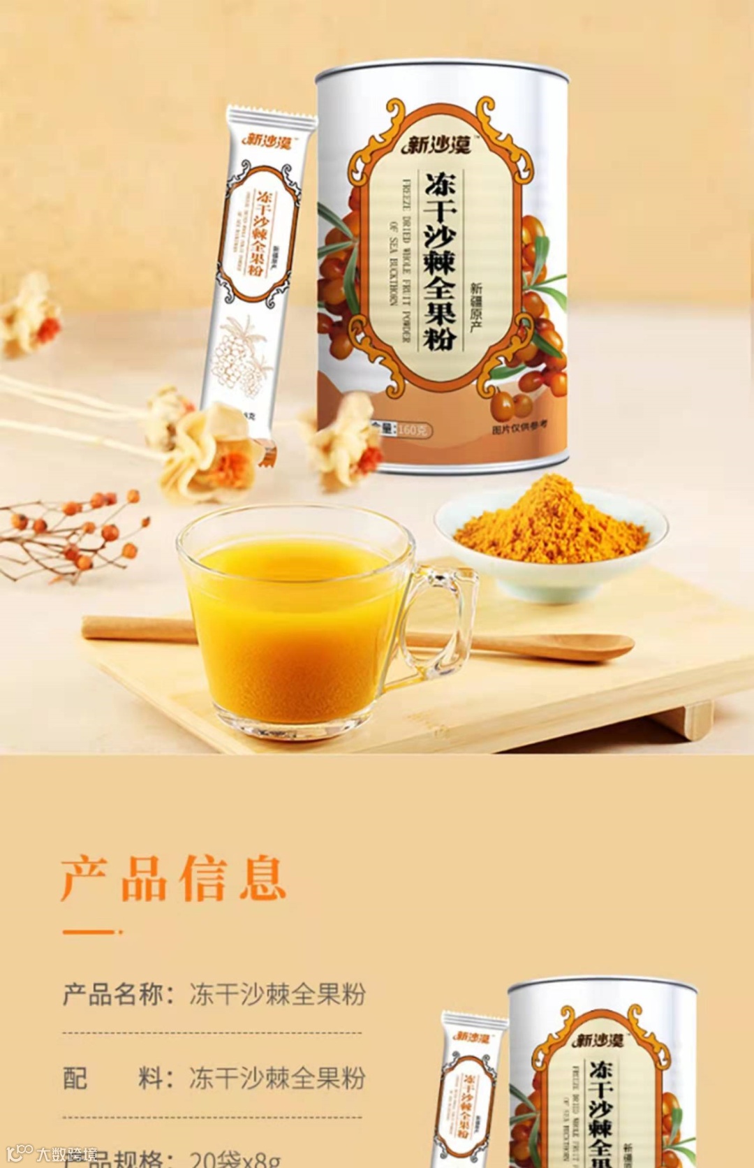 品名:新疆新沙漠冻干沙棘全果粉