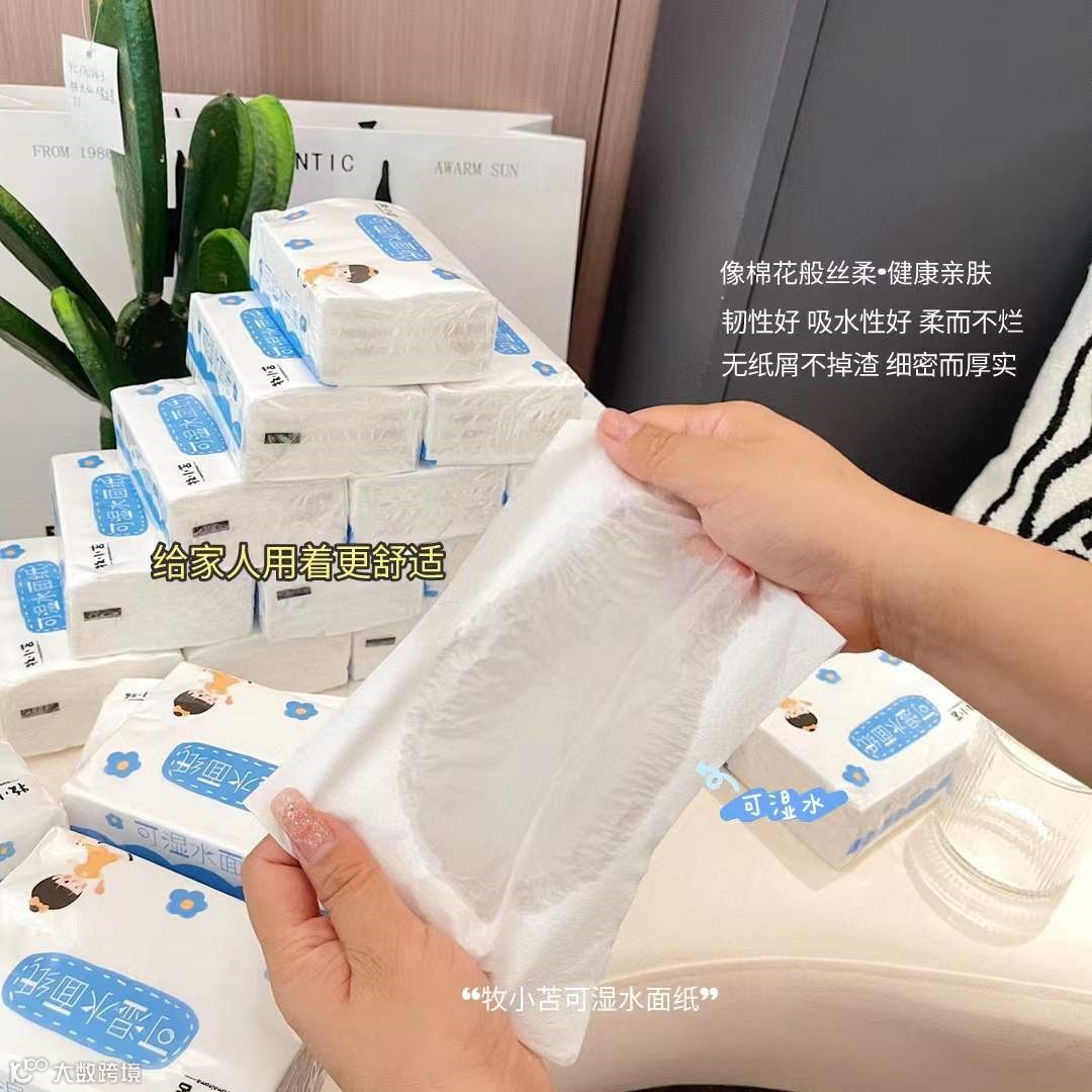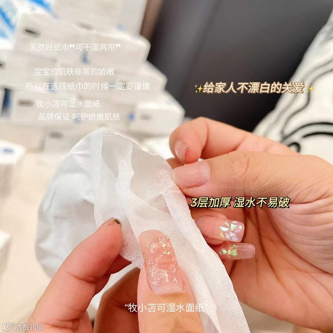 尝试摇晃纸巾,用力摇晃也不会破?!湿水柔韧不易烂果然不是夸出来了!^_^牧小苫纸巾