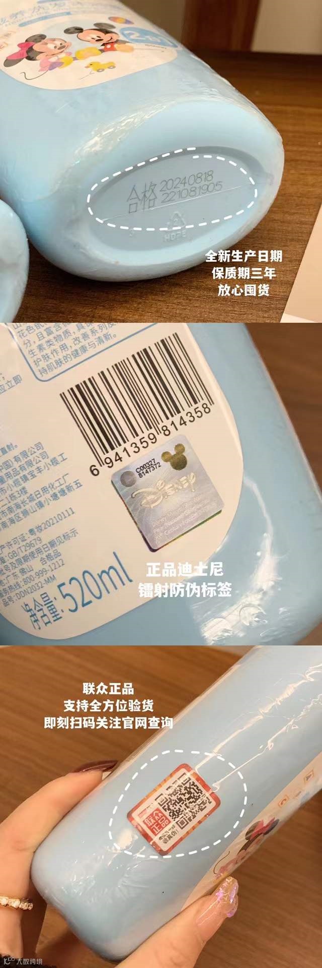 瓶身是有二维码可以扫的哦 显示的是迪士尼品牌官网地址 我家保证是100%保真 独家正规渠道 搞这个渠道真的太不容易了 而且还被我卖的这么便宜 不买的人我真的搞不懂了就 !太划算了 我家沐浴露真的可以放心囤了 保质期3年不用担心过期问题 快点给宝宝买起来 绝对不踩雷!