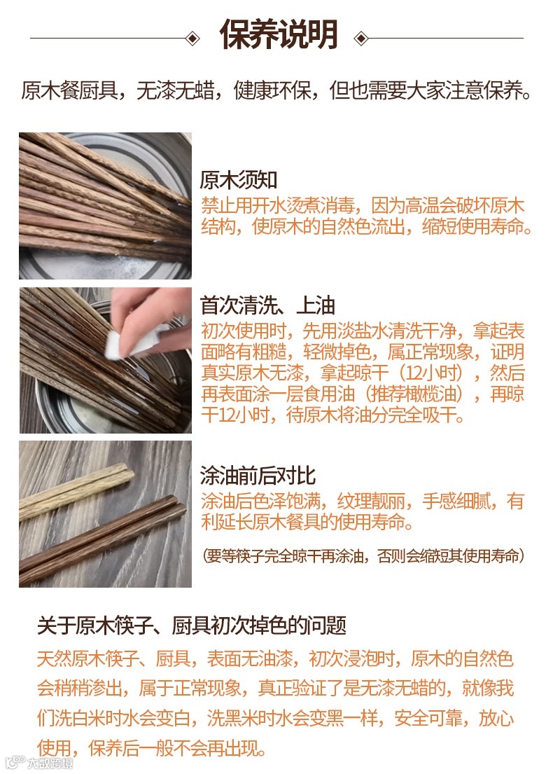 【筷子特点】:高密实木、手工打磨,淡淡原木气息