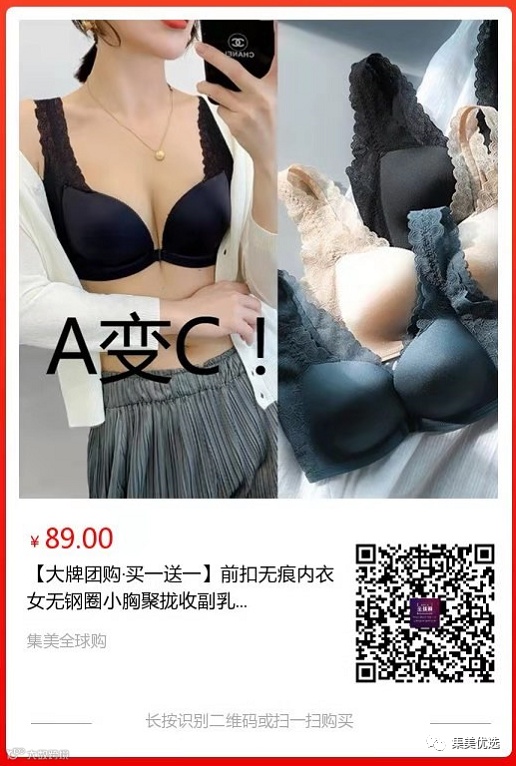 【大牌团购】前扣无痕内衣(买一送一) 原价:139元 SVIP福利补贴价:89元
