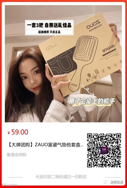 【大牌团购】ZAUO富婆气垫梳套盒 原价:99元 SVIP福利补贴价:59元 其实从古至今