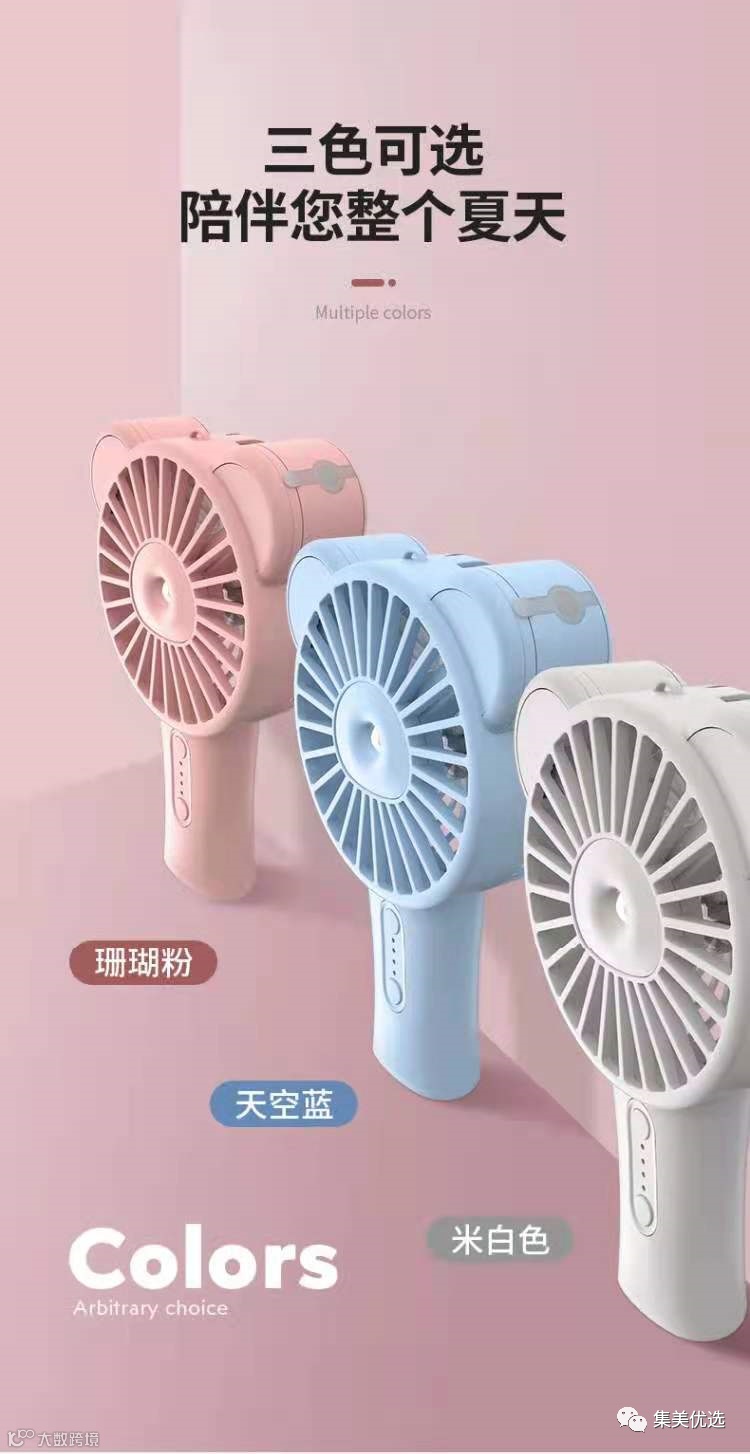 今年夏天 出门就靠这个移动补水“小空调” ¥39.9=多功能喷雾迷你风扇 珊瑚粉、 天空蓝、 米白色三款颜色可选
