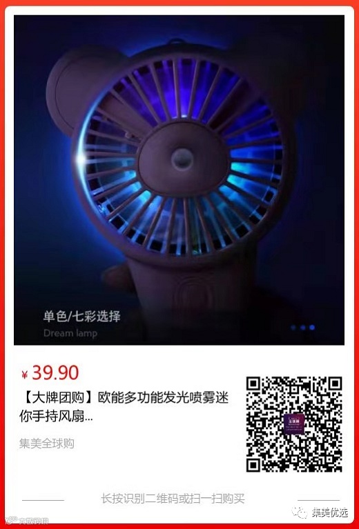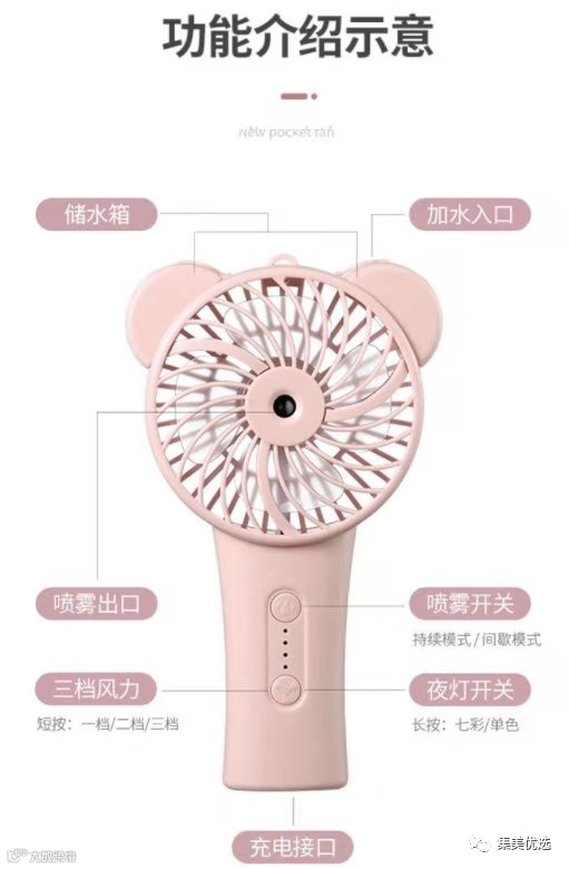 【大牌团购】欧能多功能发光喷雾迷你手持风扇 原价:59元