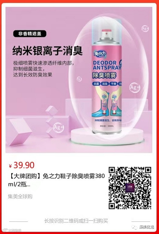 【大牌团购】兔の力鞋子除臭喷雾380ml/瓶 2瓶 原价:59元 SVIP福利补贴价:39.9元 今天就给大家推荐这款
