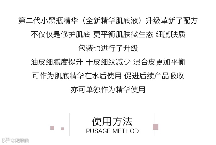一般护肤品所能达到的效果都是针对表皮层的,很难针对皮肤微生态系统。而微生态小黑瓶的亮点,就是不止是肌底的修护,还能深入微生态系统,毫不费力就可以去安抚它,直到肌肤状态持续稳定。