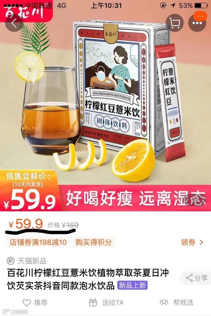 【大牌团购】柠檬红豆薏米饮 三盒 原价:59元 大牌团购价:39.9元 【柠檬红豆薏米饮】