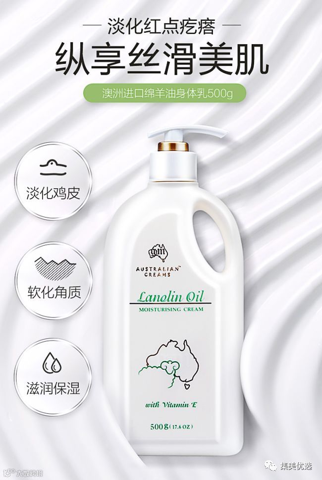 温和:绵羊油跟人体表面油脂最接近,能快速渗透人体肌肤,补充肌肤缺失的营养成分,温和滋润不油腻。