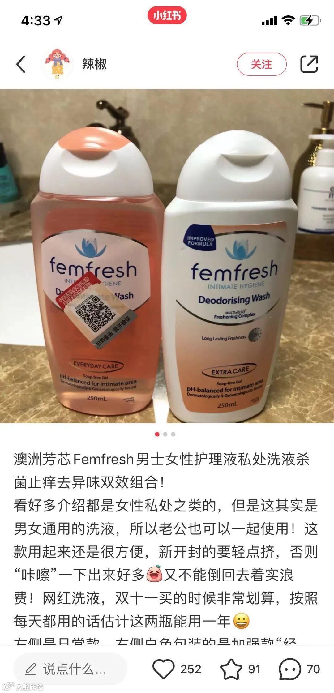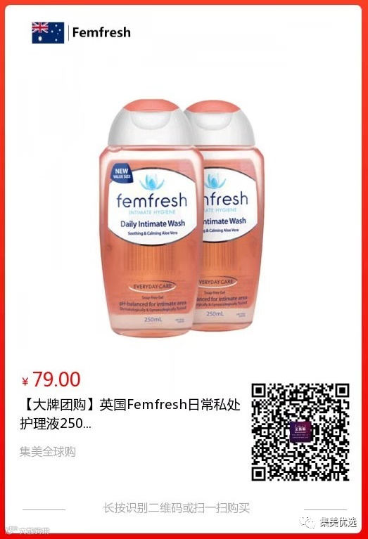 femfresh私处护理液,诚心推荐这款给大家~口碑非常不错,成分天然无化学添加,效果很赞,用它清洗贴身小内裤除菌效果也很好~
