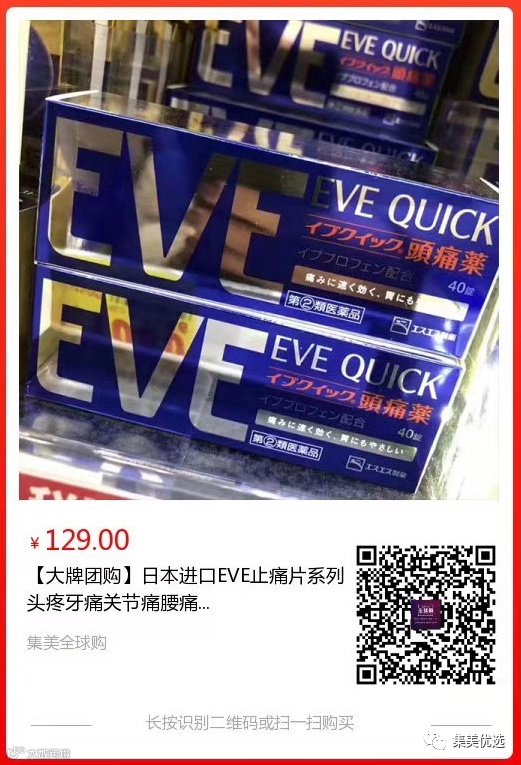 日本药品的标准比较严格,品质值得信赖!日本白兔牌EVE止痛解热片主要成分是伊布普洛芬,是一种止痛剂。 注意事项:不能和其他止痛药、退烧药、感冒药、镇定剂同时服用。服用完不能开车或操作机械,服用前后不能饮酒。