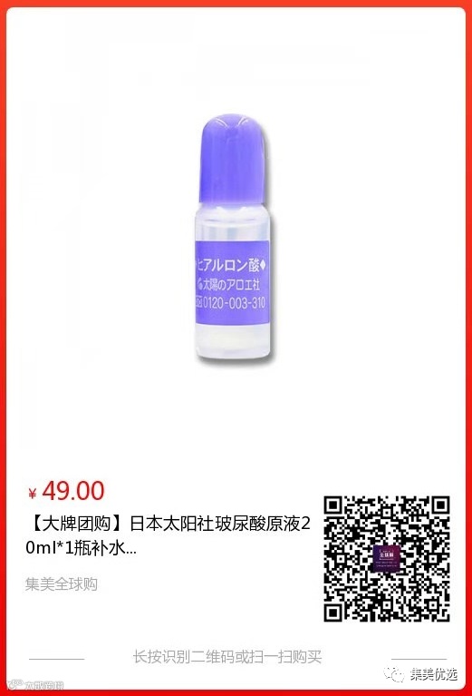 【大牌团购】日本 太阳社玻尿酸原液20ml*1瓶 原价:69元 SVIP福利补贴价:49元