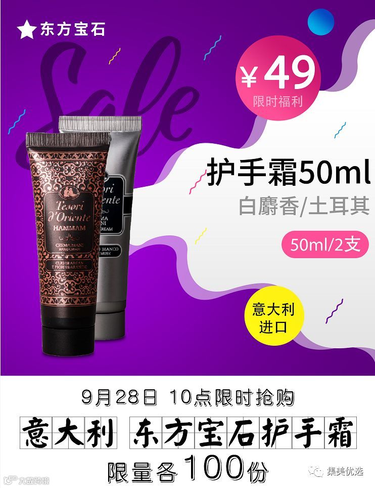 【福利团购】意大利东方宝石护手霜50ml白麝香土耳其滋润保湿清爽不油 2支