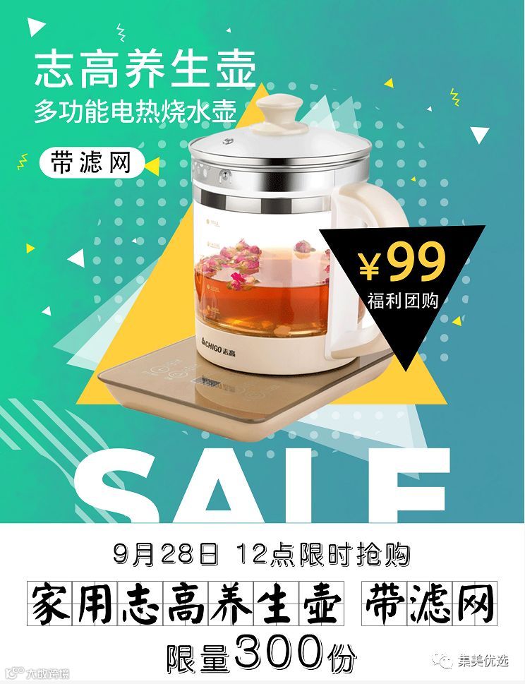 【福利团购】志高养生壶家用办公室加厚玻璃多功能电热烧水壶花茶壶煮茶器 带滤网