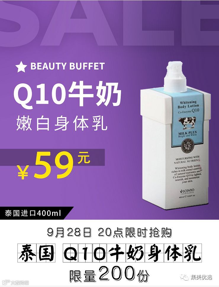 【福利团购】泰国Beauty Buffet Q10牛奶嫩白身体乳 400ml