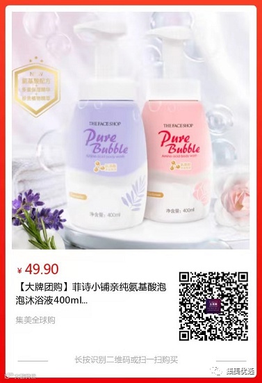 【大牌团购】菲诗小铺亲纯氨基酸泡泡沐浴液400ml 原价:79元 SVIP福利补贴价:49.9元 自带迷人香气的沐浴露,在洗澡的同时感受芳香的魅力,超治愈!不仅让洗澡变得更有趣,还能缓解沉闷心情,舒缓身心,甚至有助于安眠哦!