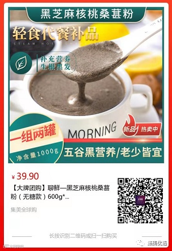 【大牌团购】聊鲜—黑芝麻核桃桑葚粉(无糖款) 600g*2罐 原价:59元 SVIP福利补贴价:39.9元