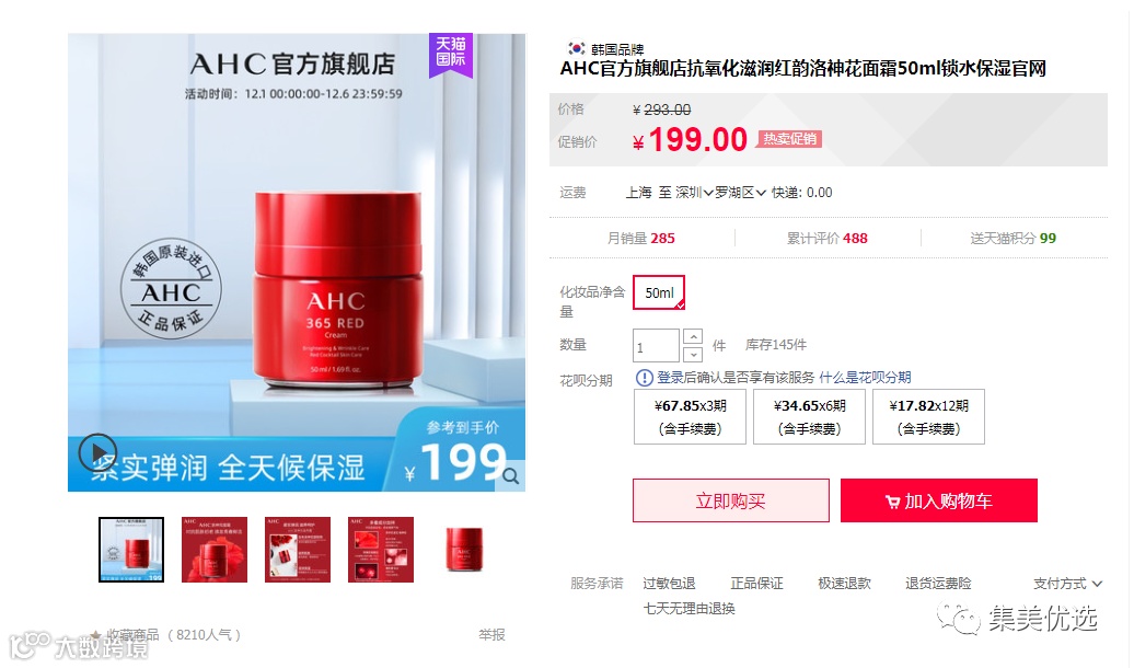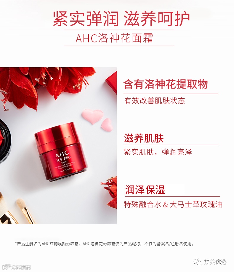 【大牌团购】AHC红韵焕颜滋养霜50ml 【下单即赠红韵精华露9.5ml】 原价:179元 SVIP福利补贴价:109元 前几天开了AHC的洛神花精华