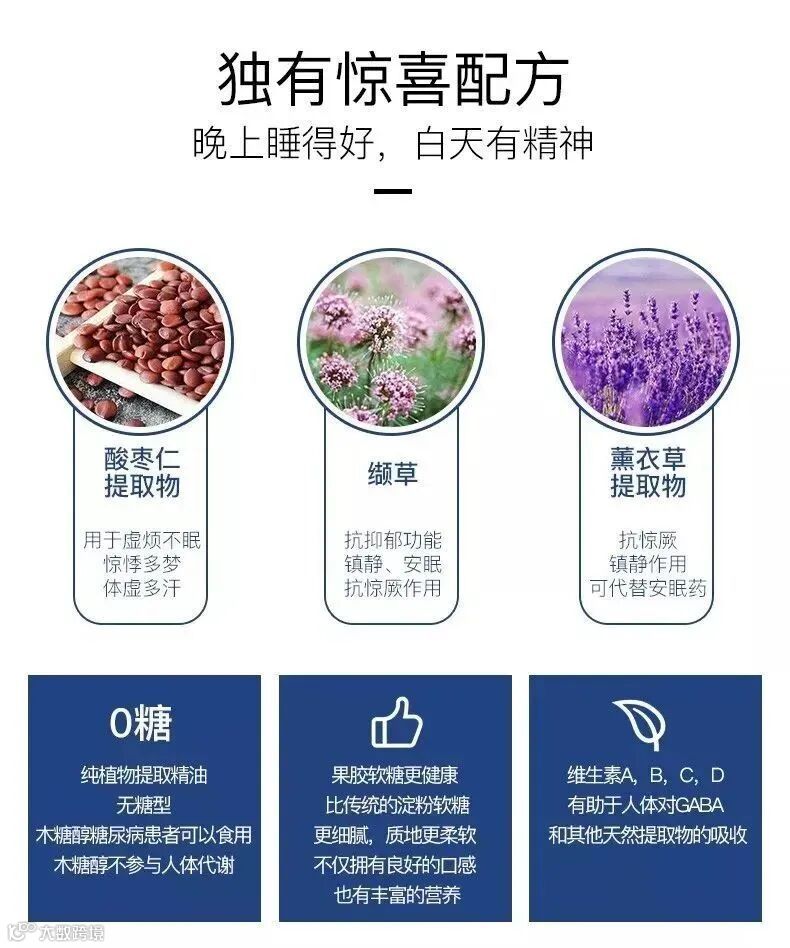 【大牌团购】美国G'NITE 无糖型GABA睡眠软糖60粒*1瓶 非褪黑素 原价:109元