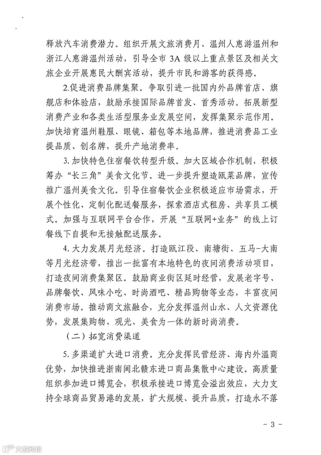 打造瓯江段、南塘街、五马-大南等月光经济带,推出一批富有本地特色的夜间消费活动项目,打造夜间消费集聚区。鼓励商业街区延时经营,发展老字号、品牌餐饮、风味小吃、精品购物等业态,丰富夜间消费市场。