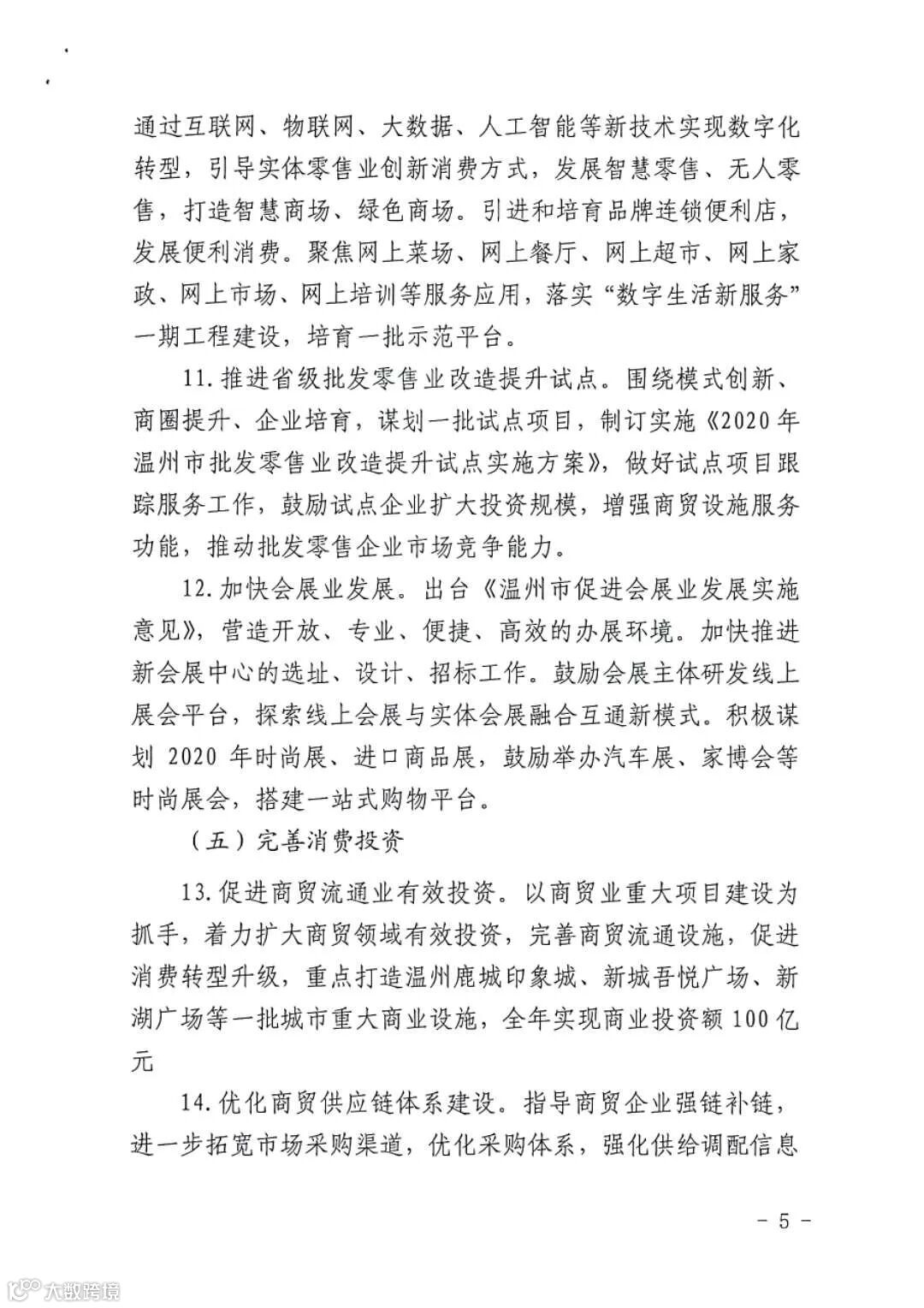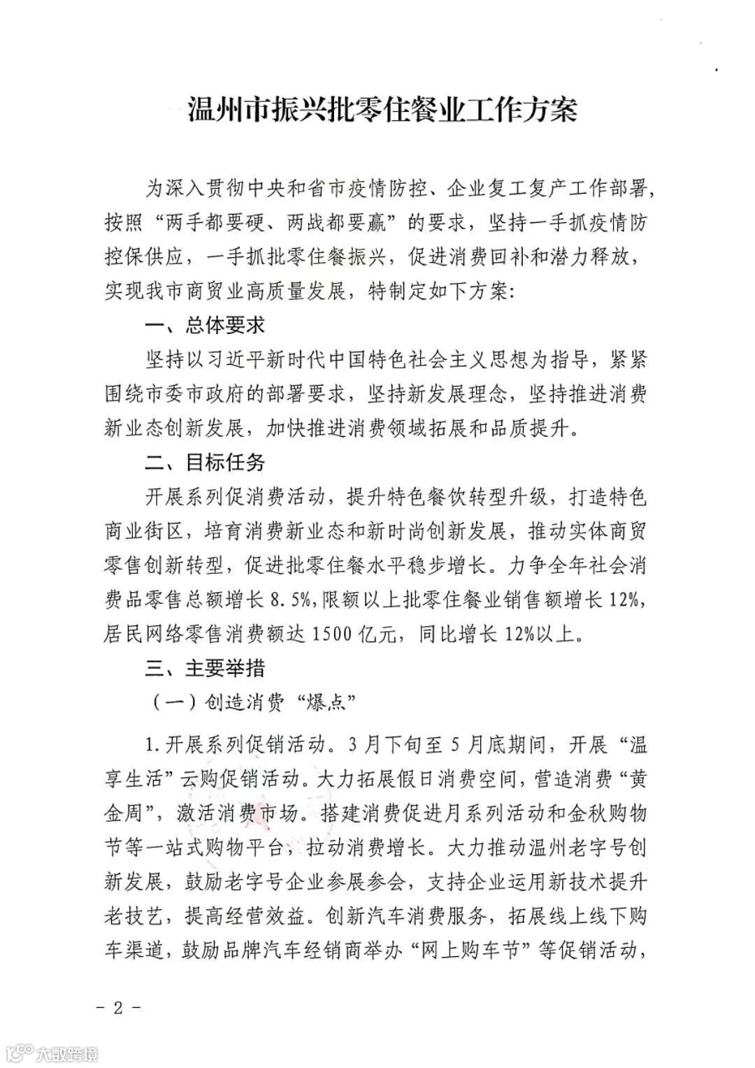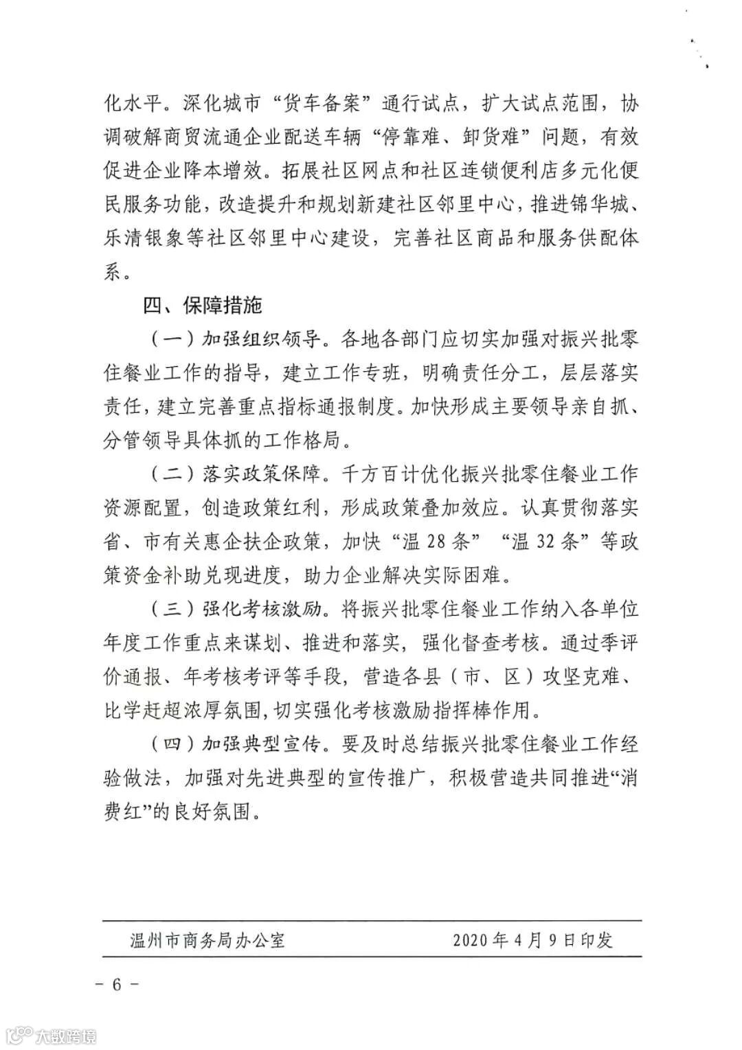 4月9日,市商务局印发《温州市振兴批零住餐业工作方案》,通过创造消费“爆点”、拓宽消费渠道、优化消费环境、探索消费模式和完善消费投资五方面14条举措促进消费回补和潜力释放,实现我市商贸业高质量发展。