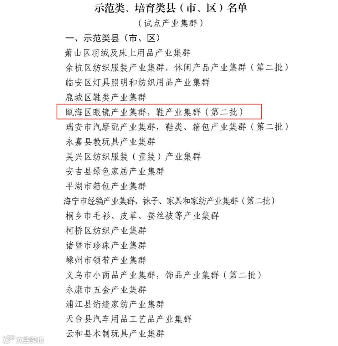日前,该区申报的眼镜产业集群、鞋产业集群(第二批)被列入2020年浙江省产业集群跨境电商发展试点专项激励名单示范类第一档,并获得专项激励资金500万元。