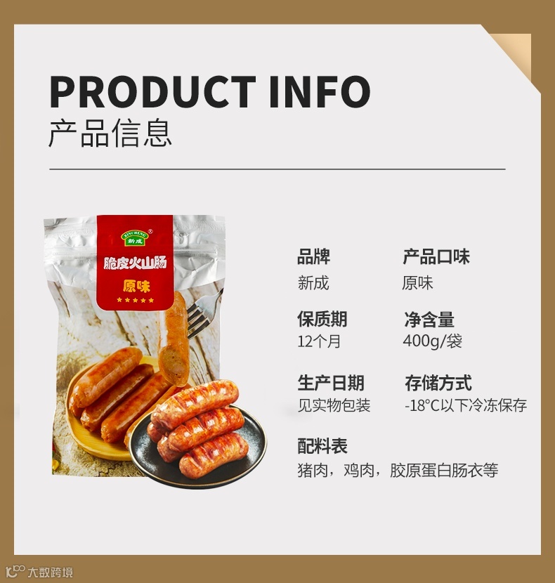 【大牌团购】新成火山肠(原味、藤椒味)400g/袋 4袋 原价:99元 大牌团购价:79元 【品名】新成火山肠(原味、藤椒味)
