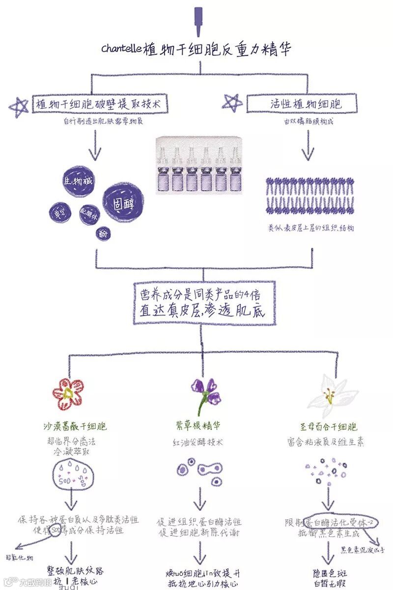 植物干细胞被称为真正不老的神器,它存在于分生组织的特殊构造内,拥有持续分裂能力的子细胞,自我修复受损组织和器官。chantelle植物干细胞反重力精华利用澳洲原始天然植物萃取精华作用于肌肤,利用植物干细胞具有非常惊人的再生能力,可加速肌肤细胞新生自我修复,生于细胞老于细胞。