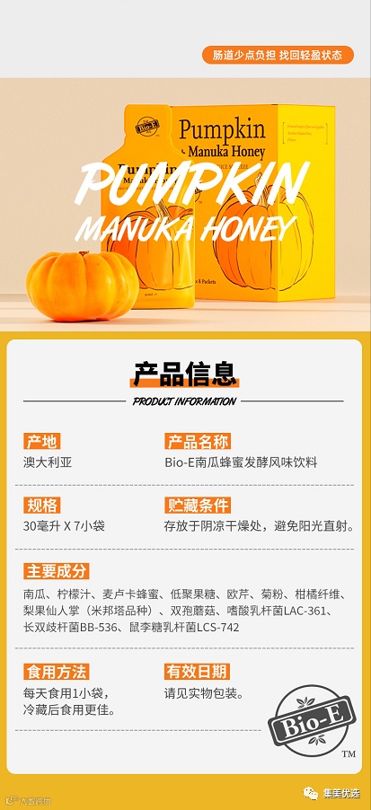 【大牌团购】Bio-e南瓜蜂蜜发酵风味饮料 30ml*7袋/盒 原价:99元